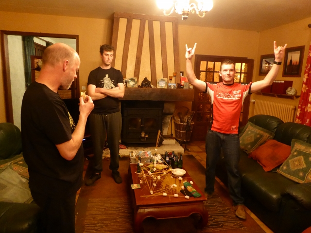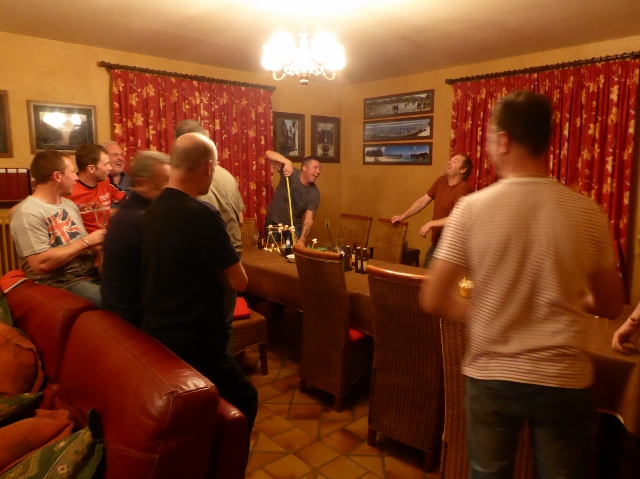 Dave (Smith) beats Andy’s “plank” record with a little help from some red wine!! |